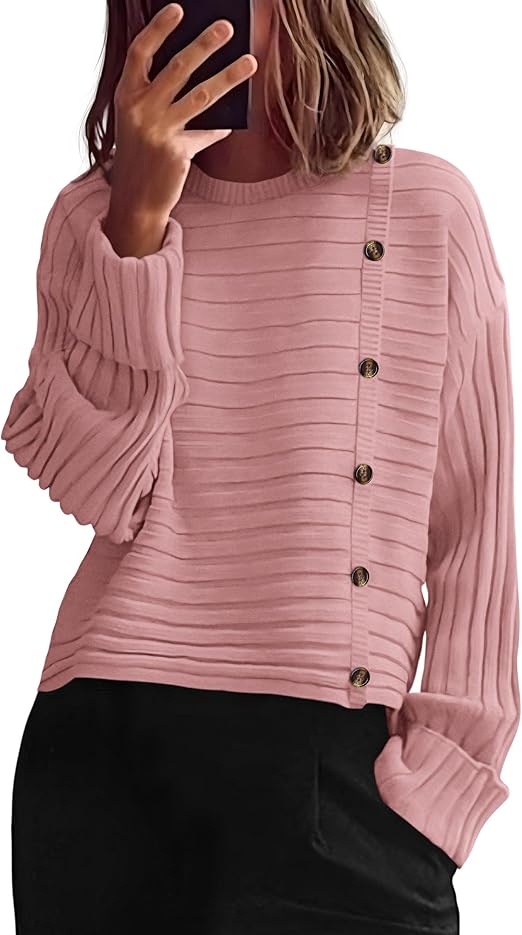 • Features: Long Sleeve Womens Tops/Crewneck Sweater Women/Solid Color T Shirts For Women/Button Fall Outfits For Women/Winter Pullover Sweaters/Knit Pullover Sweater Women/Chunky Sweaters For Women 2025/Sweater Tops For Women/Womens Loose Fitting Tops