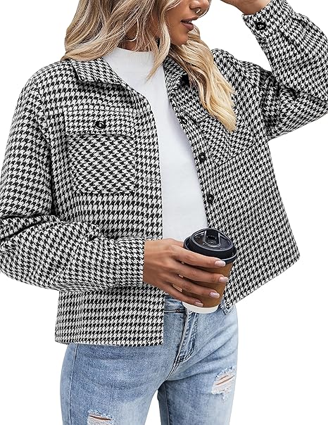 - FEATURES: Vintage Flannel plaid shirts, designed with two buttoned chest pockets, button closures, lapel collars and button cuffs. The loose fit trendy cropped plaid jacket comes in various fashionable colors that never go out of style.